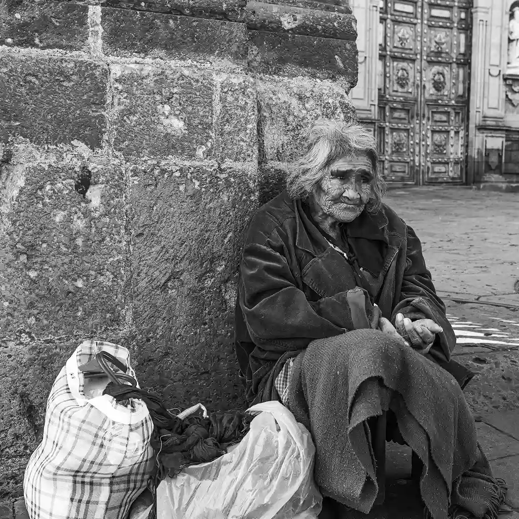 Una mujer sin hogar, atrapada entre la indiferencia y el ruido urbano. La cámara no lo reduce a miseria: lo devuelve a humanidad.